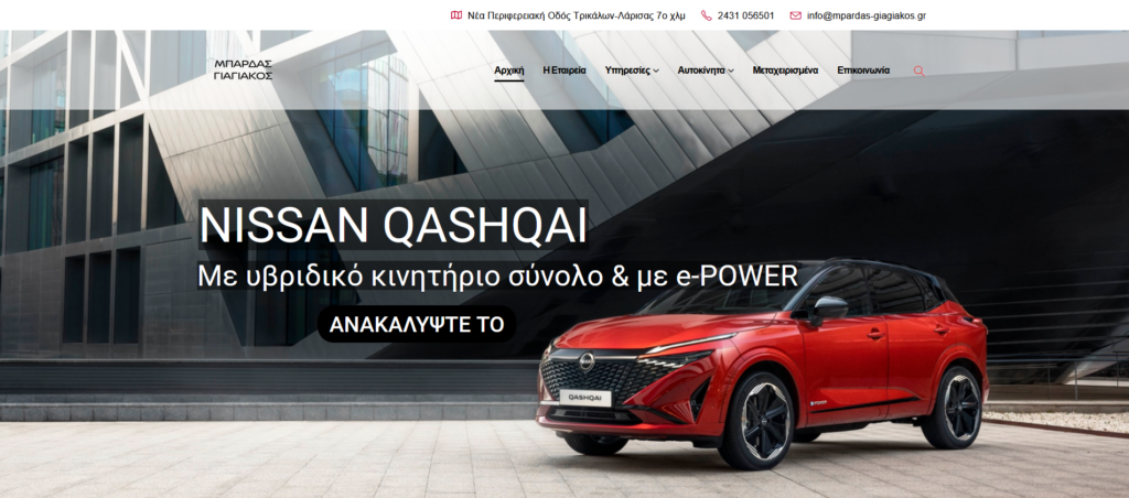 Κατασκευή & Προώθηση Ιστοσελίδας Καtασκευή Ιστοσελίδας και Προώθηση Social Media DETAILS Client: Nissan Μπάρδας Γιαγιάκος Online: mpardas-giagiakos.gr VIEW WEBSITE